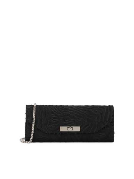 Elegante pumps in herenstijl, gemaakt van hoogwaardig, glad natuurlijk leer in klassiek zwart. De voorkant van het bovenwerk wordt gekenmerkt door een opvallende leren bies met natuurlijk haar in zwart- en grijstinten, versierd met een subtiele dierenprint. Het geheel wordt gecompleteerd door een dun riempje met een decoratieve zilveren gesp, die de schoenen een verfijnde touch geeft. Het model staat op een brede, stabiele naaldhak, die zorgt voor draagcomfort gedurende de hele dag. Dit is een ideale keuze voor vrouwen die op zoek zijn naar een combinatie van klassiek, modern en een beetje roofzuchtige touch.