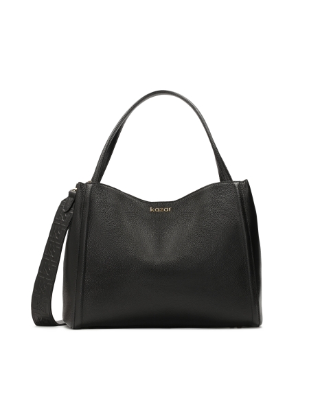 De zwarteslippers, gemaakt van natuurlijk leer van topkwaliteit, hebben een elegant en klassiek ontwerp. De brede opvallende middenvoetband is versierd met een groot KAZAR-monogram, dat een luxe touch toevoegt. Het monogram contrasteert subtiel met het gladde, glanzende leer. De slippers hebben ook een band tussen de tenen, waardoor ze een vorm hebben die typisch is voor slippers. De band is slank maar stevig gemaakt en zorgt voor comfortabel dragen en een stevige grip op de voet. De afwerking van de schoen benadrukt elegantie en comfort, waardoor ze een ideale keuze zijn voor warme dagen.