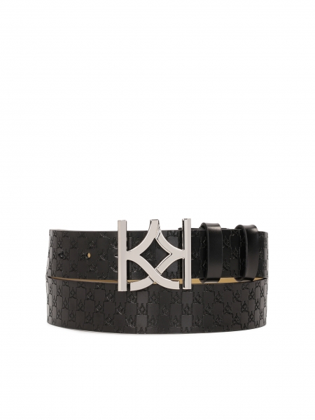 Moderne en elegante sleutelhanger van hoogwaardig natuurlijk leer in zwarte kleur is een stijlvol accessoire dat tijdloze eenvoud combineert met luxe afwerking. Het gladde leer is opvallend geknoopt in een decoratieve knoop, waardoor het geheel een unieke designertouch krijgt. De sleutelhanger is afgewerkt met twee slanke bandjes met goudkleurige metalen uiteinden en valt op door het subtiele contrast. Uitgerust met een stevige karabijnhaak met het KAZAR-logo en een klassieke sleutelring garandeert hij een comfortabele en veilige bevestiging. Een extra detail is een ronde hanger met een fijne gravure, die de elegante look compleet maakt. Dit is een geraffineerd accessoire voor wie houdt van een minimalistische stijl met een vleugje exclusiviteit - perfect voor sleutels, handtas of als origineel cadeau.