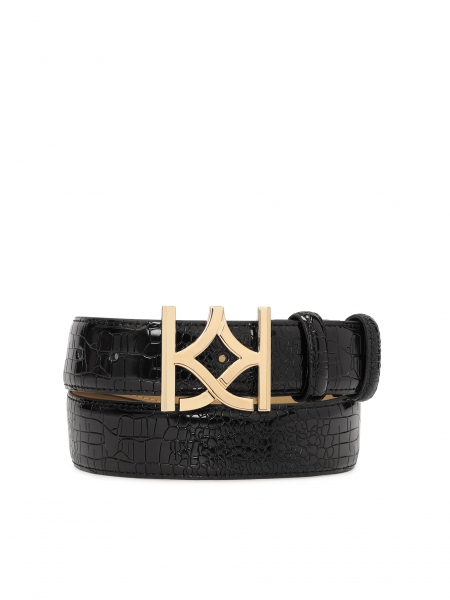 Decompacte damesportemonnee van hoogwaardig reliëfleer is een praktisch en onvervangbaar vrouwelijk accessoire. Het model is met groot vakmanschap gemaakt om te voldoen aan de verwachtingen van vrouwen die van luxe accessoires houden. De gouden rits en het KAZAR-logo steken prachtig af tegen de achtergrond van zwart reliëfleer. Het interessante, uiterst modieuze ontwerp maakt de portemonnee opvallend.