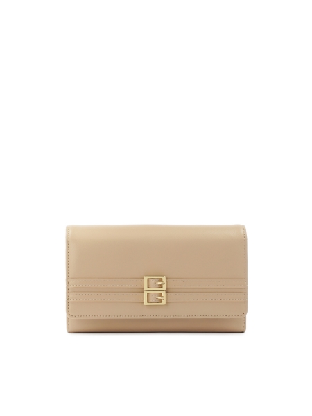 Elegante, decoratieve riem van beige natuurleer combineert een verfijnde stijl met luxueuze details. Op de voorkant bevindt zich een siergesp, ingewikkeld versierd met kleine kristallen die subtiel fonkelen en bijdragen aan de algehele glamour. De riem is bovendien versierd met een goudkleurige metalen ketting die harmonieus samengaat met de beige tint van het leer. De sluiting in de vorm van een ronde karabijnhaak benadrukt het moderne en stijlvolle karakter van dit accessoire. Ideaal voor formele en avondoutfits, het trekt de aandacht met zijn unieke esthetiek.